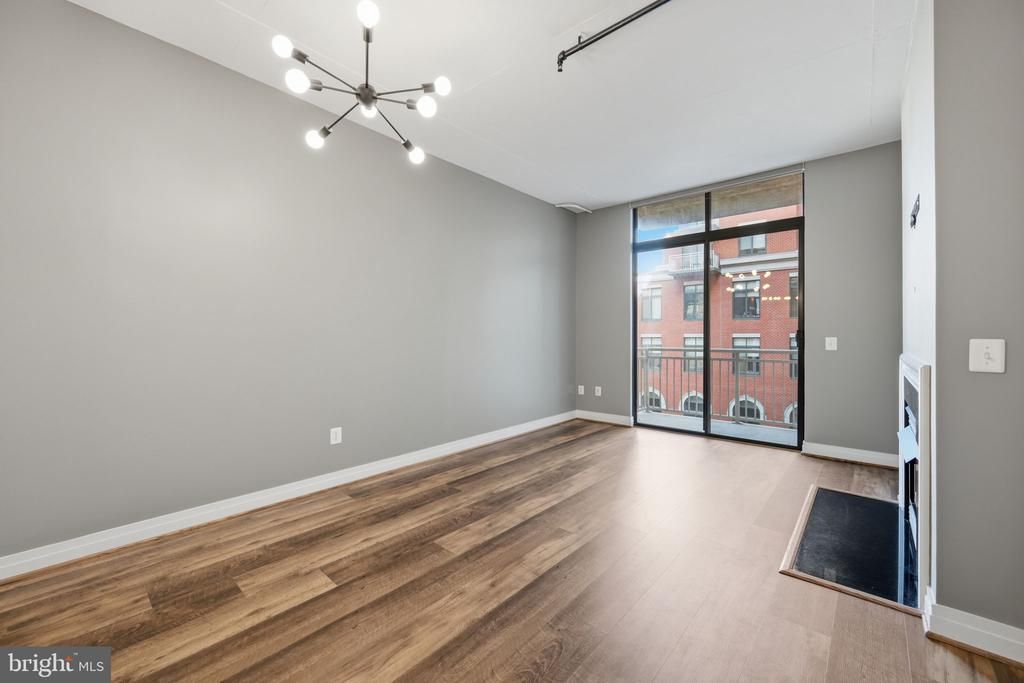 Welcome to Unit 411 at the Residences at Station Square, a loft-style one bedroom in the heart of Clarendon that blends modern finishes with the building’s signature industrial character. Step inside to 11-foot ceilings with exposed ductwork and black painted pipes, giving the home a distinctive loft feel that’s both stylish and inviting. The living space is anchored by 9.5 wide inch luxury vinyl floors in hickory, installed in 2019 adding warmth and durability throughout. Rich deep gray walls and updated light fixtures create a modern, designer-inspired aesthetic. The living room centers around a cozy gas fireplace, creating a warm focal point that contrasts beautifully with the loft-style architecture. Just off the living space, a private balcony overlooking Clarendon offers the perfect spot for morning coffee or unwinding in the evening. The kitchen features beautiful wood cabinetry, black granite counters, and a stone tile backsplash, complemented by sleek black electrical outlets for a cohesive contemporary look. It opens comfortably to the living area, creating a space that works just as well for everyday living as it does for entertaining. The spacious bedroom continues the loft feel with high ceilings and great natural light and features custom dark wood closet built-ins, offering both style and excellent storage. The dual-entry bathroom functions like a private suite, accessible from both the bedroom and the main living area and includes a large soaking tub with a shower combination. Upgraded in-unit laundry adds everyday convenience. One garage parking space conveys. Located just two blocks from the Clarendon Metro Station, the Residences at Station Square offers outstanding amenities including a two-level outdoor pool and a billiards room all in one of Arlington’s hottest neighborhoods, surrounded by Clarendon’s restaurants, nightlife, shops, and parks. One of the most well-appointed one bedroom condos in an A+ location, don’t miss this one!