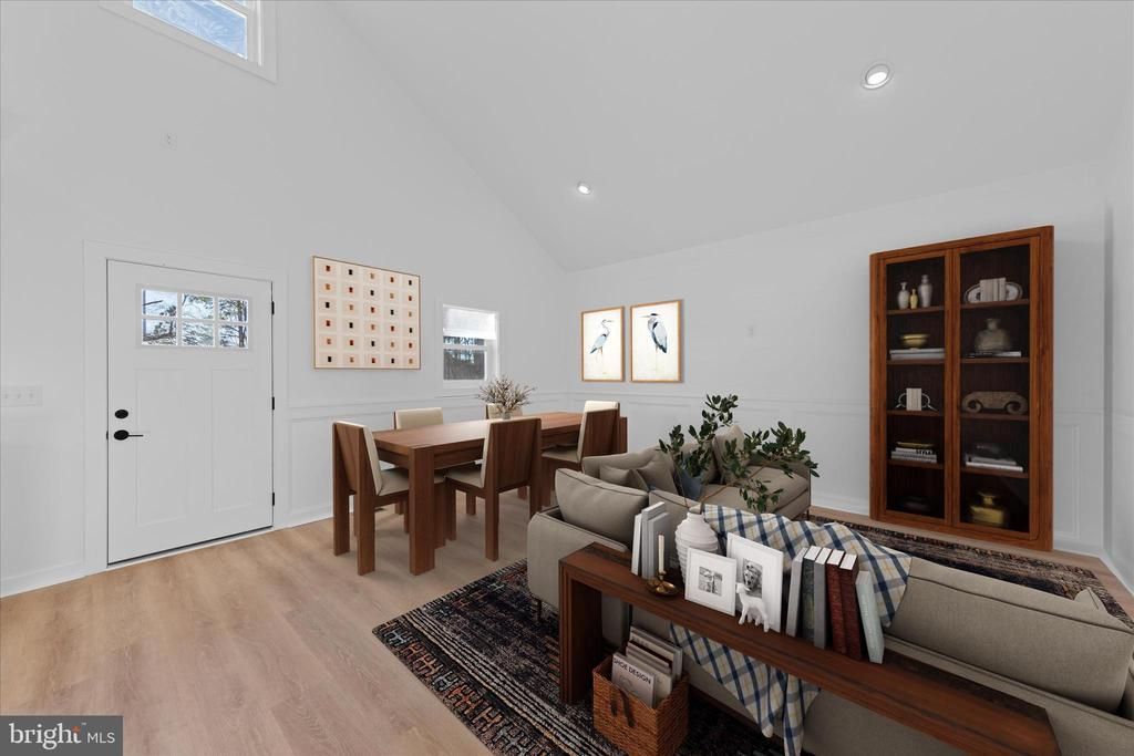 Experience refined living in this beautifully designed new-construction two bedroom, two full bath home, where timeless finishes meet modern comfort in a thoughtfully crafted open floor plan. Built with quality in mind, the home features durable 2x6 exterior framing, interior wall insulation, and comprehensive blown-in insulation for enhanced efficiency and comfort. The stunning great room is designed to seamlessly accommodate both living and dining, highlighted by soaring vaulted ceilings, a dramatic celestial window, and an abundance of natural light. Elegant picture-frame molding, gracefully capped with a chair rail, along with a subtle shiplap accent wall, adds architectural sophistication and sets a tone of understated luxury, while solid wood trim throughout the home further elevates the craftsmanship. Flowing effortlessly from the great room, the impeccably appointed kitchen is both beautiful and functional, featuring sleek quartz countertops, a striking herringbone backsplash, stainless steel appliances, and a show-stopping farmhouse sink. Forty-two-inch dove-gray cabinetry, a pantry, and direct access to a utility/mudroom complete this designer-inspired space. The home’s exquisite molding continues down the main hallway, leading to a versatile flex room on the first floor, ideal for a home office, creative studio, or hobby space. Upstairs, an unfinished bonus area with a 3/4" subfloor, accessed by pull-down stairs, offers flexible storage and future customization potential. The serene primary suite offers a walk-in closet and a beautifully finished en-suite bath, while the secondary bedroom is conveniently served by a stylish full hall bath. Luxury vinyl plank flooring and recessed lighting extend throughout the entire home, reinforcing the cohesive, polished aesthetic. Additional highlights include an encapsulated and insulated crawl space that is heated and cooled and equipped with a sump pump and dehumidifier for year-round peace of mind. Meticulously designed with exceptional attention to detail, this two-bedroom, two-bath residence delivers elevated style, comfort, and functionality for today’s buyer.