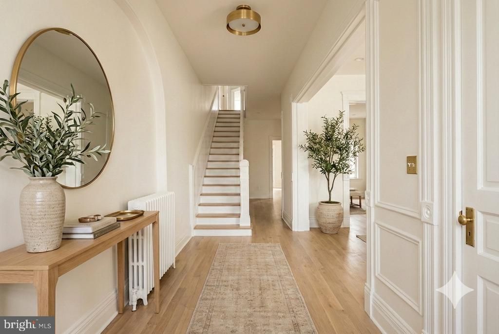 Situated on the largest lot on Logan Circle, this rare 23-foot-wide bay-front Victorian offers exceptional scale, flexibility, and over 5,000 square feet of living space—complete with an in-ground 11’ x 36’ lap pool. The home was completely renovated approximately 30 years ago, with much of its original detail and charm thoughtfully restored, and now presents an excellent opportunity for its next renaissance. The main residence spans approximately 3,600 square feet and features 11-foot ceilings on the first floor. A grand main level includes a formal living room, parlor, and an expansive dining room that comfortably accommodates dinner parties of 20 or more guests. Upstairs, the home offers four bedrooms, each with its own en-suite bath. The second floor features two spacious primary suites, both appointed with soaking tubs and separate showers. The outdoor space is equally impressive. A large patio sits just off the pool, while an elevated terrace overlooking the water provides the perfect setting for sunbathing or relaxing. The terrace level includes two separate apartments—a one-bedroom, one-bath unit and a studio—offering excellent potential for guests, rental income, or flexible living arrangements. The property also includes one-car parking. This is a truly unique opportunity to own one of Logan Circle’s most distinctive and expansive homes. Note: Some listing photos may include digital enhancements or staging to illustrate potential uses of the space.