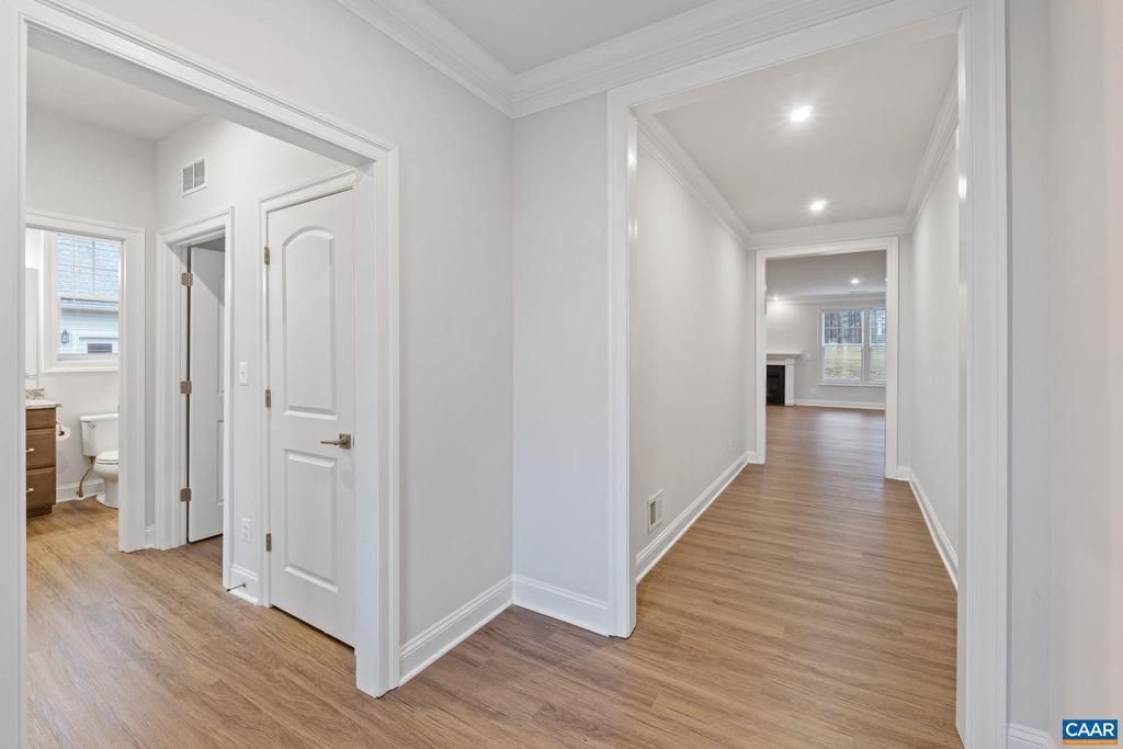This beautiful one-level, single-family home on a generous lot features 3 bedrooms, 2 full baths, LVP flooring throughout, 9-foot ceilings, walk-in closets, a walk-in pantry with wood shelving, and a gourmet kitchen gallery with Frigidaire stainless appliances. Timberlake cabinetry with dovetail construction has cushion-close cabinets and drawers, beautiful granite counters, a covered back porch, an open floor plan, a gas log fireplace in the family room, a washer, a dryer & utility sink in the laundry room, and an attached 2-car garage. Spring Creek offers residents a lovely fitness center, outdoor pool, tennis & pickleball courts, walking trails, and a full-service Oak and Fire restaurant located at the Spring Creek Golf Club.,Granite Counter,Wood Cabinets,Fireplace in Family Room