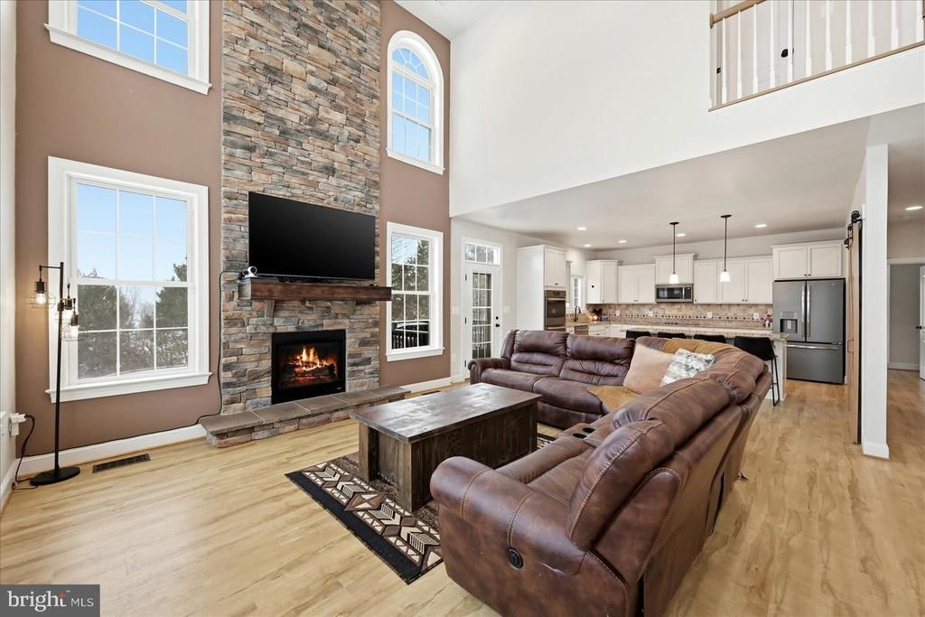 Step into your private Unionville retreat, where acreage meets intention and lifestyle takes center stage. Perfectly positioned on 4.45 serene acres, this home makes an immediate statement with a grand two-story foyer and abundant natural light flowing effortlessly throughout the main level. The true focal point is a dramatic two-story family room highlighted by a stunning floor-to-ceiling gas stone fireplace, creating a warm and inviting space for gatherings. The kitchen opens seamlessly to the family room and is designed for both everyday living and entertaining, featuring an oversized island, granite countertops, stainless steel appliances, and a functional layout that keeps everything within reach. The main-level primary suite delivers comfort and convenience, complete with an electric fireplace for cozy evenings and a private bath offering double vanities, a stand-up shower, and a relaxing Jacuzzi tub. A dedicated office, formal dining room, and main-level laundry add smart functionality where it matters most. Upstairs, three generously sized bedrooms provide flexibility for guests, hobbies, or changing needs. Outside, the lifestyle continues with a spacious rear deck, above-ground pool, storage shed, and a heated two-car garage, because comfort should extend beyond the front door. Major upgrades include a whole-house generator, high-speed fiber-optic internet, and a conditioned crawl space for efficiency and peace of mind. Located just minutes from Lake Anna and within easy reach of Locust Grove, Culpeper, Fredericksburg, and Richmond, this home offers the privacy of country living without sacrificing convenience. Acreage, infrastructure, and thoughtful design like this do not come around often. If you have been waiting for space without compromise, this is your move.