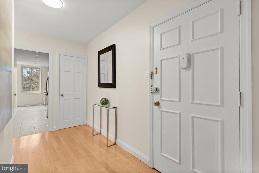 Spacious and beautifully updated, this two-bedroom, two-bathroom corner residence offers generous proportions, modern finishes, and exceptional amenities in one of Northwest DC’s most established communities. Located on the 10th floor and rarely available, the home features oversized windows that flood the space with natural light and tree views, along with a private balcony that extends the living area outdoors. The kitchen has just undergone a thoughtful refresh with new flooring, countertops, backsplash, sink, microwave, range, and dishwasher, creating a clean and contemporary feel. The primary suite is impressively scaled, easily accommodating a king-sized bed with additional seating, while large windows frame peaceful treetop and skyline views. A walk-in closet with built-ins provides excellent storage, and the renovated en-suite bath features a glass-enclosed walk-in shower, marble tile, and an elegant vanity. The second bedroom is well proportioned and versatile, ideal for guests or a home office, and is served by a classic tiled hall bath with pedestal sink, medicine cabinet, and tub. Additional highlights include hardwood flooring in the living areas, plush carpeting in the bedrooms, abundant closet space throughout, two storage units, and one dedicated parking space. Washer/Dryer allowed in unit and pets allowed. The monthly condo fee includes all utilities. 4000 Tunlaw Condominiums is a full-service elevator building with an impressive suite of amenities, including a rooftop terrace with sweeping neighborhood views, a fitness center with cardio and strength equipment, library, on-site laundry facilities (with in-unit w/d installation permitted), 24-hour front desk service, and on-site dry cleaners. Ideally situated adjacent to the 183-acre Glover Archbold Park, the location offers immediate access to nature while remaining close to Glover Park, Cathedral Heights, and Georgetown. Wisconsin Avenue’s shops, restaurants, and grocery options are just moments away. The neighborhood is known for its strong sense of community and is home to one of DC’s few remaining continuously active WWII-era Victory Gardens. A rare opportunity to own a spacious, move-in-ready residence in a full-service building with outstanding amenities and an unbeatable Northwest location.