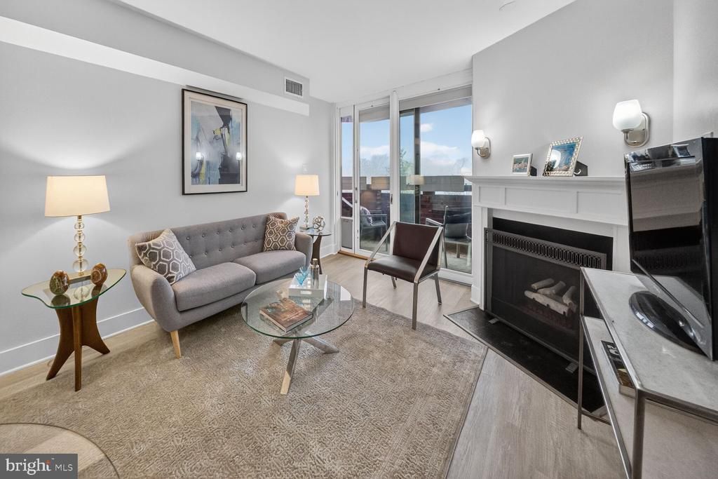 Fresh and bright penthouse unit at the North Cleveland. Come and enjoy the treetop and rooftop views over North Cleveland Park from your balcony. The entry foyer includes a coat closet and leads to the living/dining room and kitchen - the open floor plan allows for extra natural light to reach all rooms. The living room features a fireplace (currently decorative) and sliding door to the balcony. The kitchen has a pass thru to the dining room and stainless steel appliances. A hallway with a washer/dryer closet and linen closet leads to a spacious bedroom with walk in closet and a large sliding door to the balcony. The full bath was fully renovated in 2019 and features a large vanity and new toilet. The current owner made many upgrades including adding a coat closet in entry foyer , all new LVP flooring , new kitchen and bathroom as well . Water heater and HVAC replaced in 2015; washer and dryer new in 2019. The unit includes a garage parking space AND extra storage. Van Ness/UDC metro stop is just a block away as are several restaurants and grocery options.