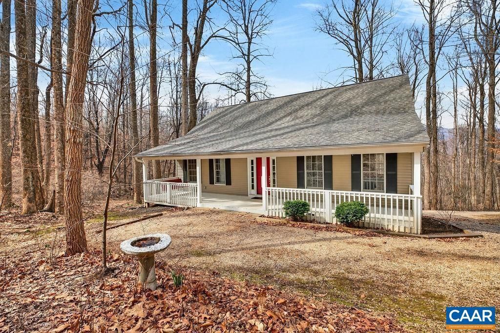 Charming 3BR, 2BA home privately nestled on 1.63 wooded acres at the end of a quiet street in the Winterhaven neighborhood of Nellysford. A peaceful stream runs along the side property boundary, enhancing the serene setting with seasonal mountain views to the west. Lovingly maintained by its original owner since it was built in 1998, the home offers a comfortable layout featuring a large living room and a spacious kitchen with cherry cabinets and stainless steel appliances. The main level includes a primary suite, while two generously sized bedrooms are upstairs. A full unfinished basement offers great potential for expansion into an additional bedroom, bath, and family room and already includes a finished 1-car garage. Enjoy the outdoors from covered front and back porches spanning the entire length of the home. Brand new roof in 2025. Winterhaven is conveniently located near the Rockfish Valley Trail system with three scenic walking trails, including stretches along the Rockfish River ideal for enjoying nature, birdwatching, and wildlife. Just minutes to Nellysford?s breweries, wineries, cideries, and restaurants and about 15 minutes to Wintergreen Resort and the Blue Ridge Parkway. A wonderful Nelson County offering.,Cherry Cabinets,Formica Counter,Fireplace in Living Room